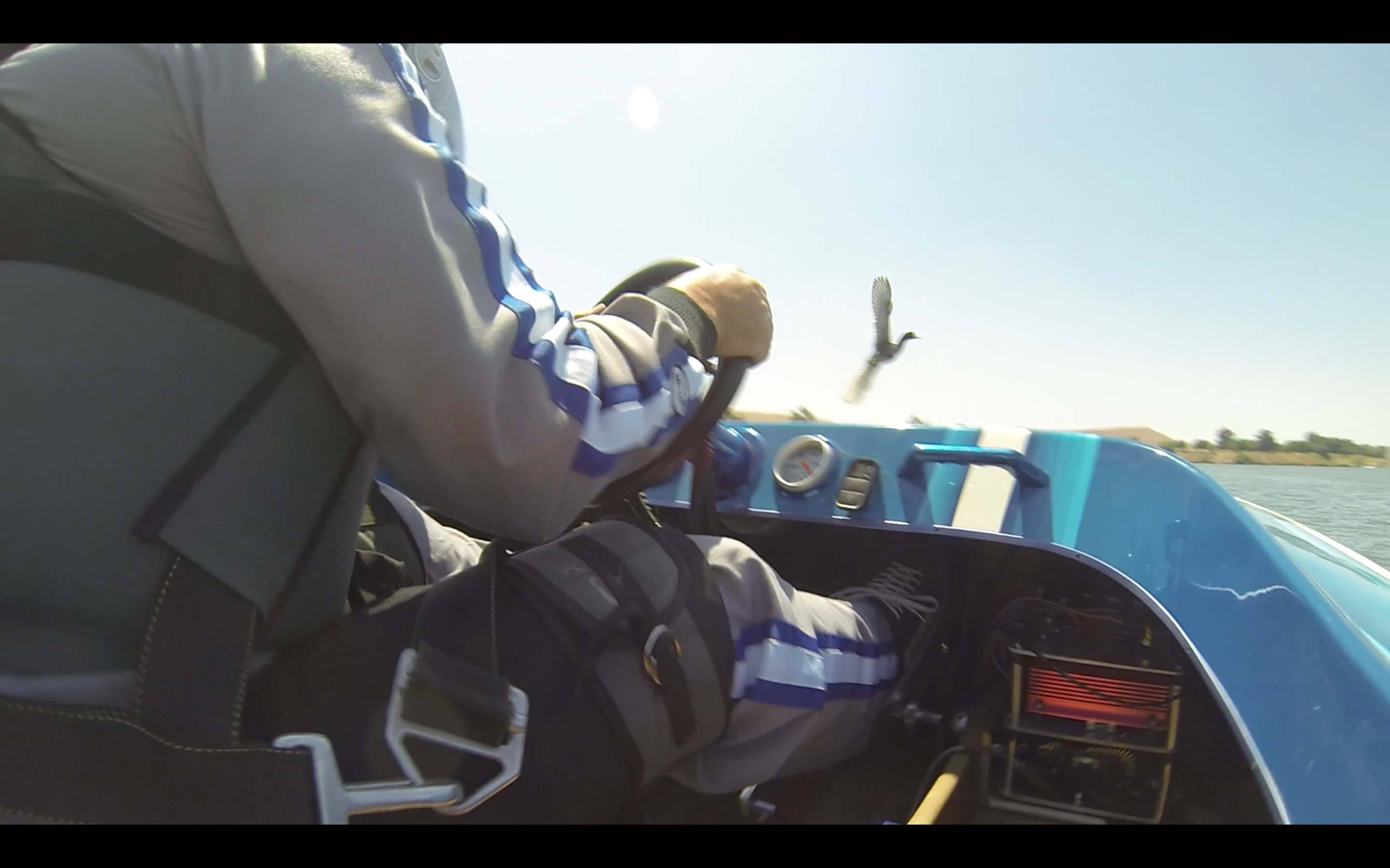 This duck definitely looks like he has a plan here. All calm like. Probably in a state of meditation or something. Maybe he watched Karate Kid too much as a duckling. I don't know. Good thing the Trophy Wife moves a lot of air at 110mph. Duck got taken out by a rooster.